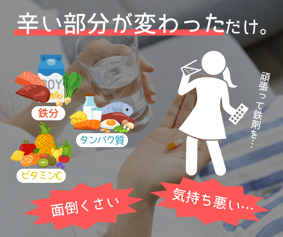他の鉄剤やサプリ、食事ではほぼ摂れない